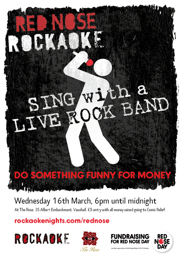 Rockaoke have performed at regular Red Nose events since 2011. Here are photos from our first Red Nose Rockaoke night at the Rose, Vauxhall in march 2011.